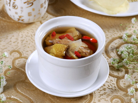 特色:湯色靚白,紅杞點(diǎn)綴。