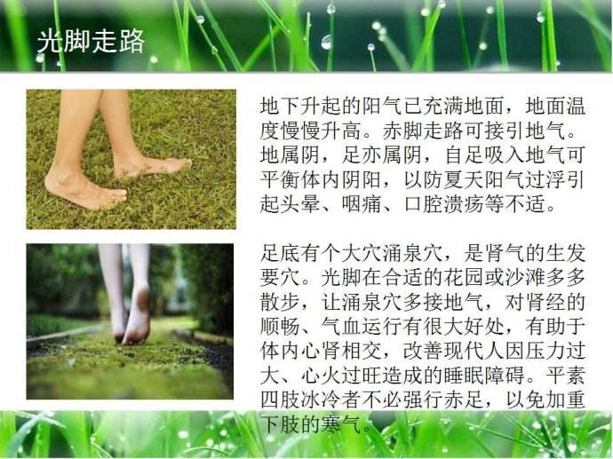 生活起居規律,適量戶外運動,北方宜晨練,南方健身房。既可以緩解精神壓力,又可以促進食物的消化吸收,防止內熱的產生和熱濕轉化為寒濕癥。